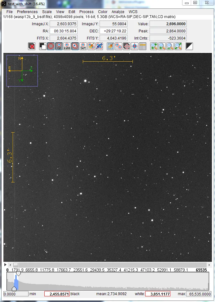 Section titled “Important Notes”This user guide assumes that the astro-mode icon is selected on the AIJ Toolbar as shown in Figure 1 and as a result the image is displayed in the AIJ interface shown in Figure 2. In the default mode, all images are opened in this format. If any of the IJ specific tools are selected (the icons to the left of the astro-mode icon), operation will revert to standard IJ operation. Clicking back on the astro-mode icon will revert to AIJ operation.