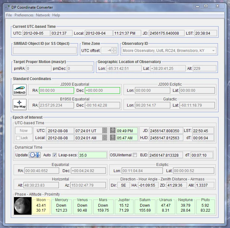 those coordinates and a specified observing location to/from UTC, local